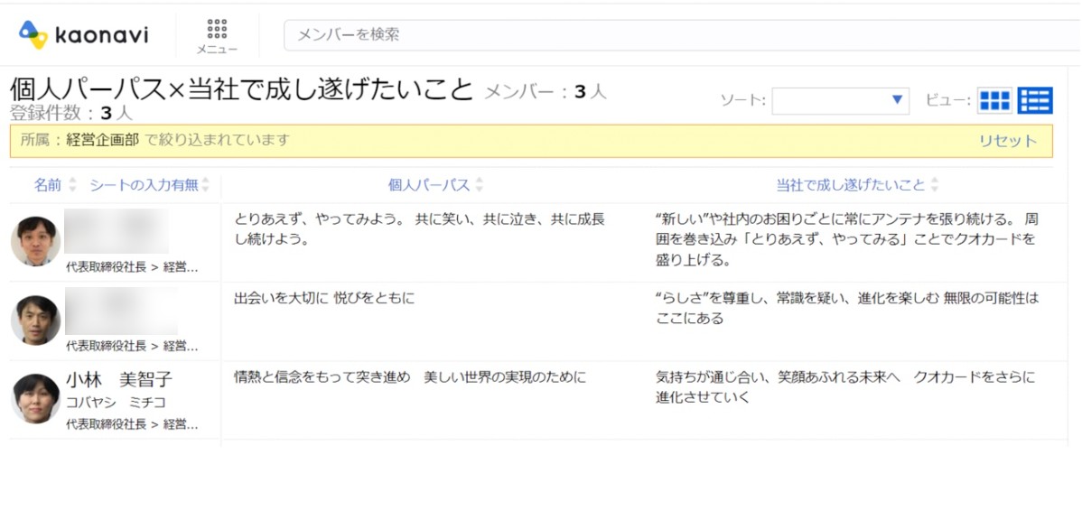 ワークショップ終了後、参加者は完成した個人パーパスをクオカード社内の人事システム「カオナビ」に登録。これにより、上司と部下の1on1や目標管理の場で、パーパスを基点にしたキャリア対話が行われる仕組みが整えられました。